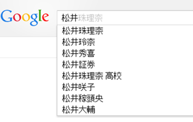 松井で予測変換すると玲奈→珠理奈→秀喜→証券